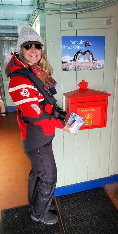 Mailing postcards from the Penguin Post Office at Port Lockroy. The postcards were received a month later—not bad!
