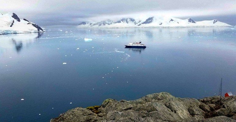 Our ship in Paradise Bay at Base Brown (Argentine Research Station).