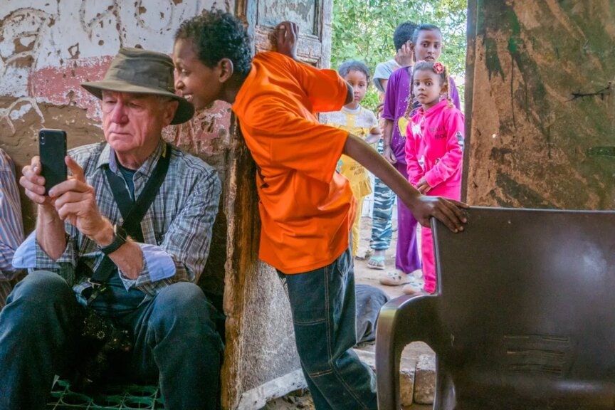 The children followed us wherever we disembarked. We were as much a curiosity to them as they were to us. This young man was not allowed into the hut, but couldn’t resist looking at the cellphone images taken of them.