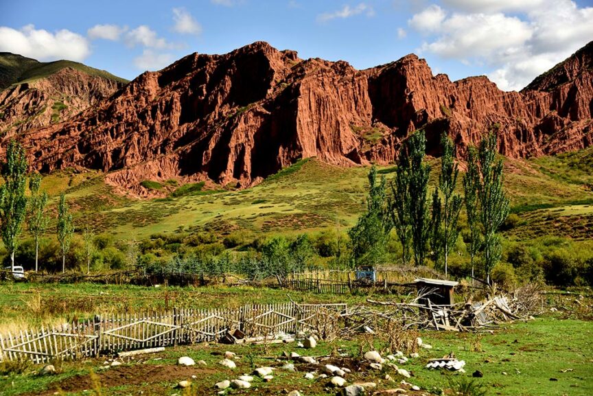 Geographically fascinating, the several valleys south of the Issyk Kul Lake are lush green with red cliffs and snow-covered mountains. We explore many of them.