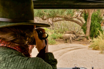 From Damaraland the scenery changes yet again as we push deeper into the rugged northwest. The drive from Onduli to Hoanib Valley Camp during this time of year is a feast for the senses, with fragrant Namibian sage, varied shades of green, purple, and pink, and geology so ancient and diverse it’s almost hard to get your bearings. Mountain? Desert? Savanna? All of the above. This was single-handedly the most memorable day I’ve spent in Africa—and we only saw two elephants!