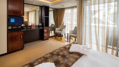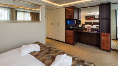The 161-guest AmaBella features a combination of amenities and design details with an impressive range of stateroom categories and public lounges, Dining on board presents an array of dining options. Choose Verde Fine Dining Restaurant, the ship's main restaurant, or Bella Cucina Restaurant, with classic Italian fare. At Erlebnis Chef's Table Restaurant, passengers can watch as a private chef prepares a special tasting menu in this unique and exclusive 24-seat venue. On select days, enjoy a lunch outdoors on the Sun Deck and room service dining for breakfast and dinner is also available in select suite categories. The ship carries a fleet of bicycles and safety helmets free for you to use. The bicycles let you venture out and explore the riverside bikeways or meander through quaint cobblestone streets. The bikes are set up and ready for use as soon as the ship docks. Thanks to the computer provided in your stateroom and high-speed Internet access plus Wi-Fi, you can stay connected with friends and family back home. The exclusive movies-on-demand system offers Hollywood's current releases, a selection of classic films, or entertaining travel videos chosen to coincide with your itinerary. You'll also enjoy a variety of English-language news, sports and satellite TV stations, as well as a selection of music channels. It's all available on your flat-panel TV, and it's completely complimentary.