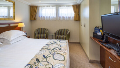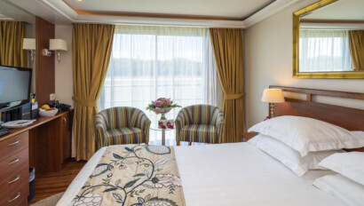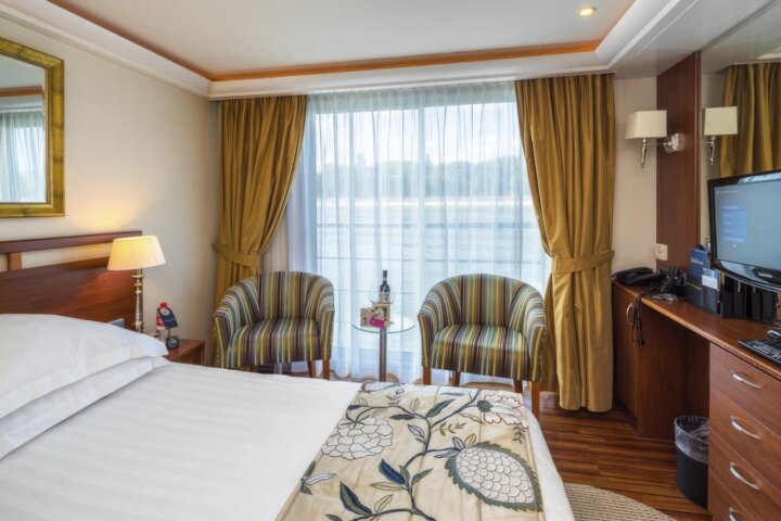 The custom-designed, 140-passenger AmaDante features spacious staterooms ranging in size from 170-255 sq ft, most with French balconies. All staterooms include plush down bedding, complimentary bottled water, terry robes and slippers, marble-appointed bathrooms, complimentary high-speed Internet access, and first-run Hollywood movies. The main lounge is the perfect setting for group gatherings and nightly entertainment and the AmaDante's sun deck and inviting whirlpool provide incredible views of Europe's legendary rivers.