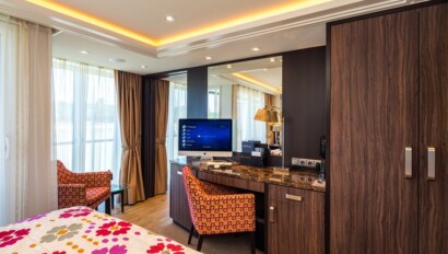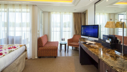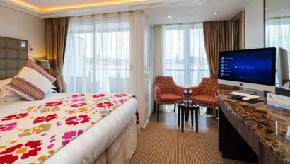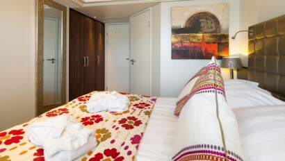 Making her debut sail in 2020, the elegant AmaSiena is one of AmaWaterways' newest river vessels, offering modern amenities including spacious “twin balconies” in the cabins. Similar to the AmaLucia, the staterooms include in-room temperature control, large wardrobes, and en-suite bathrooms with multi-jet showers. A fitness room, sun deck walking track, and swimming pool with “swim-up” bar give guests the opportunity to stay active while taking in the views, and bicycles are also available for a group or solo outing. With a maximum of just 156 passengers, there is plenty of space to unwind in the lounge where tapas and beverages are served throughout the day, and for a little extra pampering you can book a massage at the spa or join a class with the onboard Wellness Host.