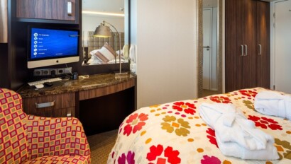 The AmaViola is a sister ship to the AmaSerena and features the most advanced design of any river cruise vessel currently in operation. This 158-passenger vessel boasts spacious staterooms measuring a spacious 210-235 sq. ft., with four suites measuring 350 sq. ft. Each offers exclusive twin balconies and in-room Internet access and entertainment on demand. Passengers will enjoy gourmet dining with free-flowing fine wine at multiple onboard dining venues. Additional shipboard amenities include a heated pool with swim-up bar, fitness center, spa, gift shop, and library, and a fleet of bicycles carried onboard for passengers to enjoy on their own or on guided bike tours.