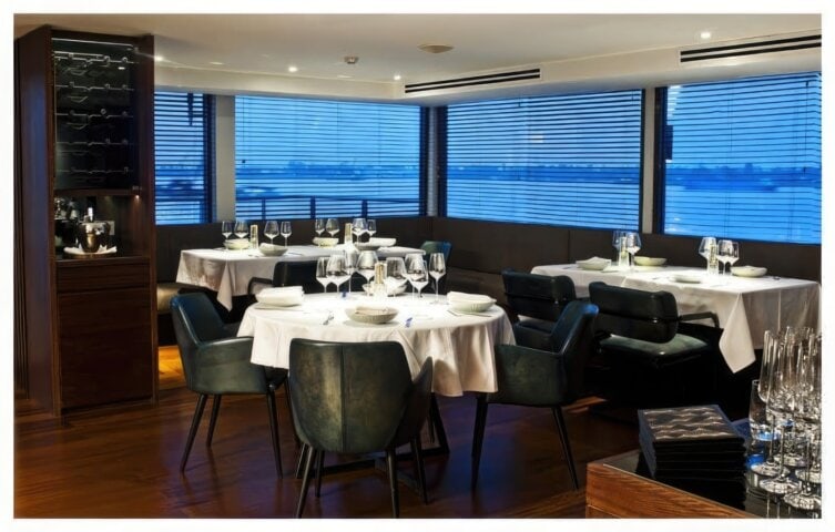 The 205-foot Aqua Mekong first set sail in 2014. Each of its 20 Design suites feature floor-to-ceiling windows facing the Mekong, large double closets, and spacious bathrooms with dual sinks and walk-in showers with rainforest shower heads. Four interconnected suites are available for families. With a maximum of only 40 guests, the sleek, award-winning ship offers an exclusive one to one guest-to-staff ratio. In this intimate setting, guests enjoy fine dining on locally sourced fruits, vegetables, and seafood with Southeast Asian flavors. Expert guides provide daily excursions on motor boats, kayaks, and bicycles. You can relax on the top deck in private cabanas or in the shaded infinity plunge pool overlooking the river. Evenings gliding along the Mekong are a magical time to unwind at one of the indoor or outdoor bars, in the theater-style screening room, at a private spa treatment, or under the stars at the outdoor cinema. Those looking for more action can head to the game room, library, or the top deck gym.