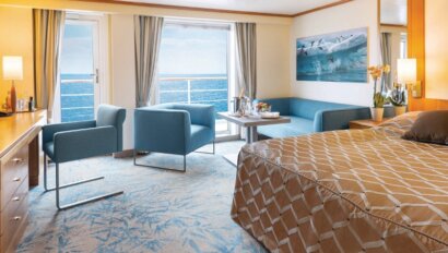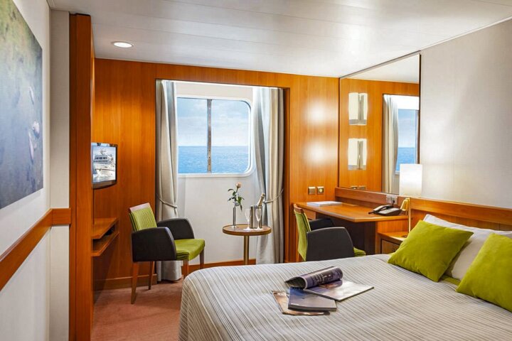 You'll voyage aboard the MS Seaventure, an ice-strengthened expedition ship with all outward-facing staterooms, a library, fitness center, sauna, small clinic, two elevators, and a dining room with picture windows. There will be no more than 130 guests on our voyage, creating a more personal experience on board, including the opportunity to spend time with our guests and the expedition team, and allowing more time for shore and zodiac excursions, as everyone can be off the ship simultaneously. Her small size allows the vessel to maneuver and anchor close to shore, where larger ships cannot go. All Seaventure cabins include a comfortable sleeping/living area with small sofa or chair, shower, hairdryer, bathrobe and slippers, spacious wardrobe, flat-screen television, and DVD player. A warm parka and boots are available for each guest for the duration of the trip, and a fleet of Zodiacs is available for forays into the realm of the icebergs.