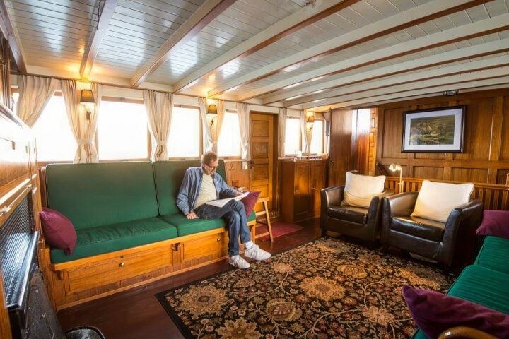 We are delighted to invite you aboard this unique and historic 86-foot wooden vessel. A “gentleman's yacht” designed specifically for exploration, she is ideal for discovering the wonders of Alaska, San Juan Islands, and the Sea of Cortez. You'll find a lovely wood-paneled salon aboard—a great space where you can unroll the charts and share the route you've explored that day and discuss the adventures that lie ahead. There is a spacious covered back deck, the ultimate spot for watching marine life (think whales, seals, and more!) as you relax with a drink in hand. You won't believe the meals that the on-board chef produces from the galley, including fresh-baked goods and wonderful fish from the bounty of the surrounding seas.