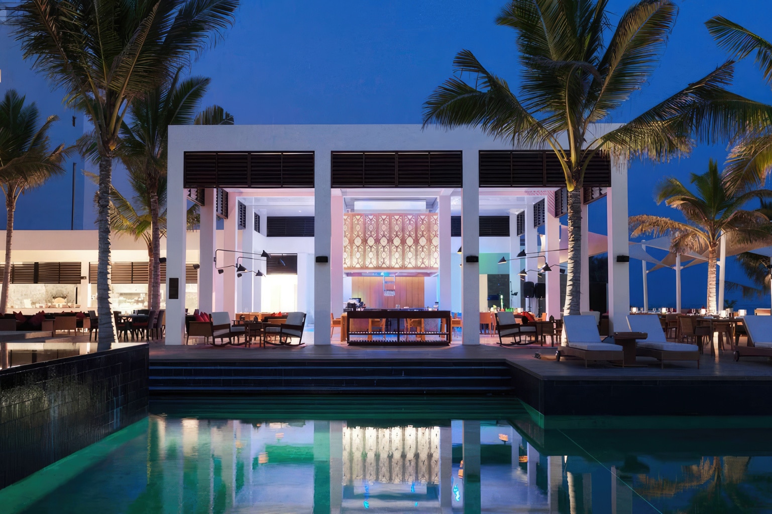 Indulge in luxury at this wonderful beachfront oasis overlooking the Arabian Sea. Stroll garden walkways lush with palms and water features, take a dip in the infinity pool, or just relax on the private white-sand beach. Guest rooms feature a private balcony or terrace with daybed, with garden, lagoon, and beach views. Amenities include a holistic spa, three fine restaurants, a fitness center, tennis courts, and library. The Al Baleed is a member of the prestigious Anantara hotel group.