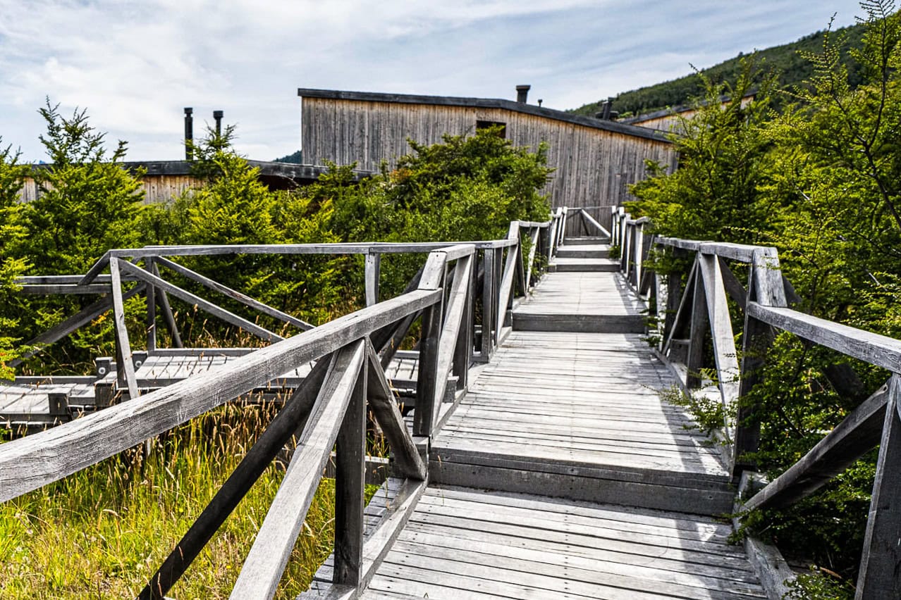 The seven modern chalet-cabins at the BordeBaker Lodge are cozy and comfortable, each with a wood-burning stove, floor-to-ceiling windows, and a small balcony with fantastic views over the turquoise Baker River. The cabins are connected to the main lodge by wooden walkways. The restaurant in the main lodge offers excellent meals sourced from local farms and gardens.