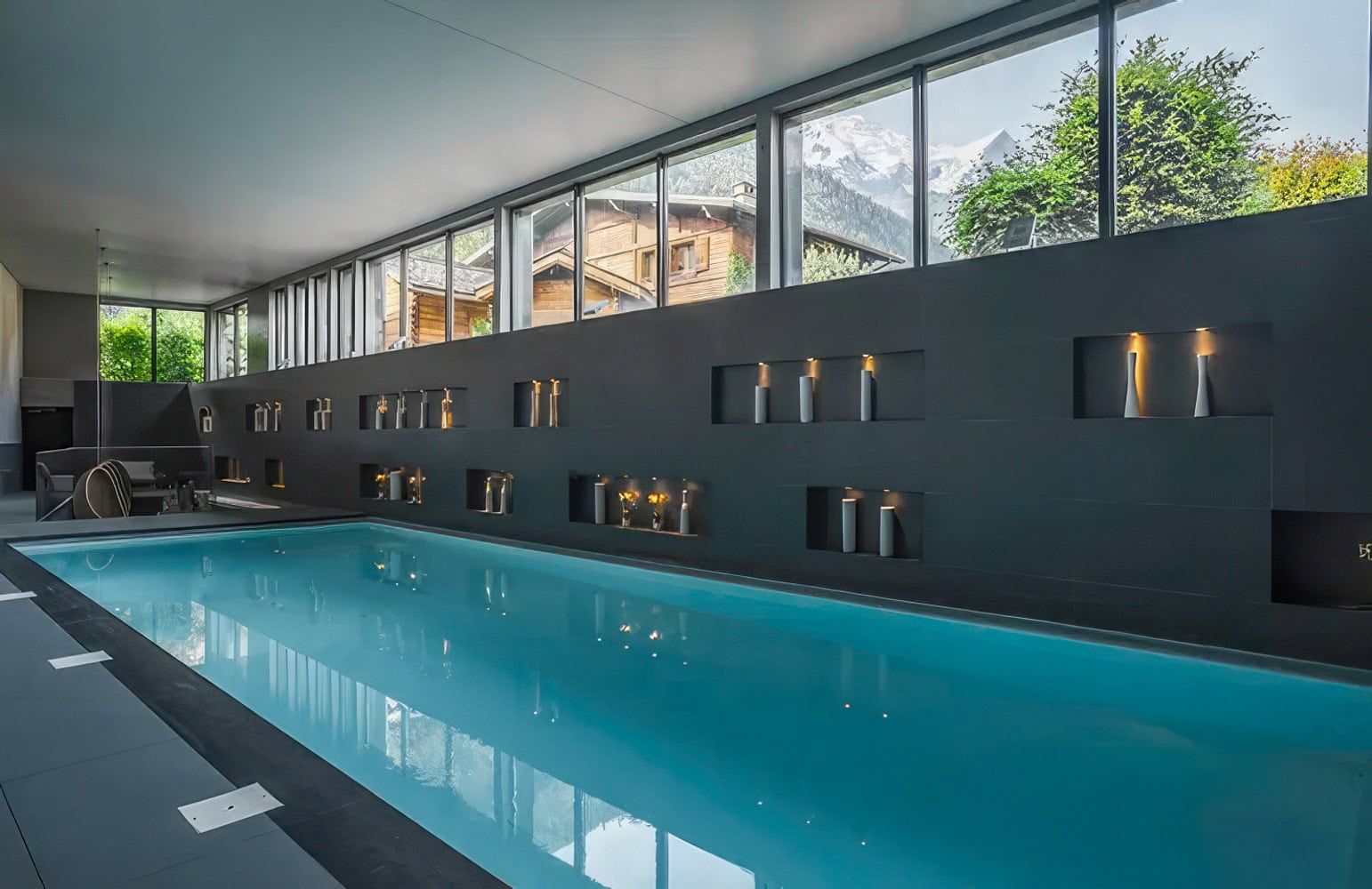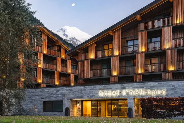 Set in the heart of Chamonix right next to the famous Aiguille du Midi cable car, Hotel l'Heliopic is a lovely hotel and spa that blends modern influences with traditional ski lodge charm. A large welcoming lobby features a chic lounge with fun board games and the guestrooms have large beds, spacious bathrooms, and private balconies looking out to Mont Blanc and the Aiguille du Midi. Take a dip in the pool, unwind in the sauna or steam room, or simply kick back in the lounge with a cocktail from the bar.