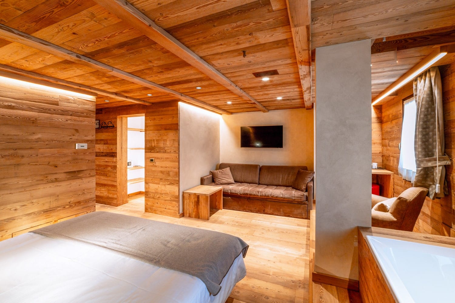 Hotel Castor is a traditional family-run hotel in the historic heart of Champoluc, with wood-paneled rooms, a historic dining room updated to modern standards, and a lively bar. An abundant buffet breakfast buffet is offered, as well as evening meals, and the hotel has a very good wine list.