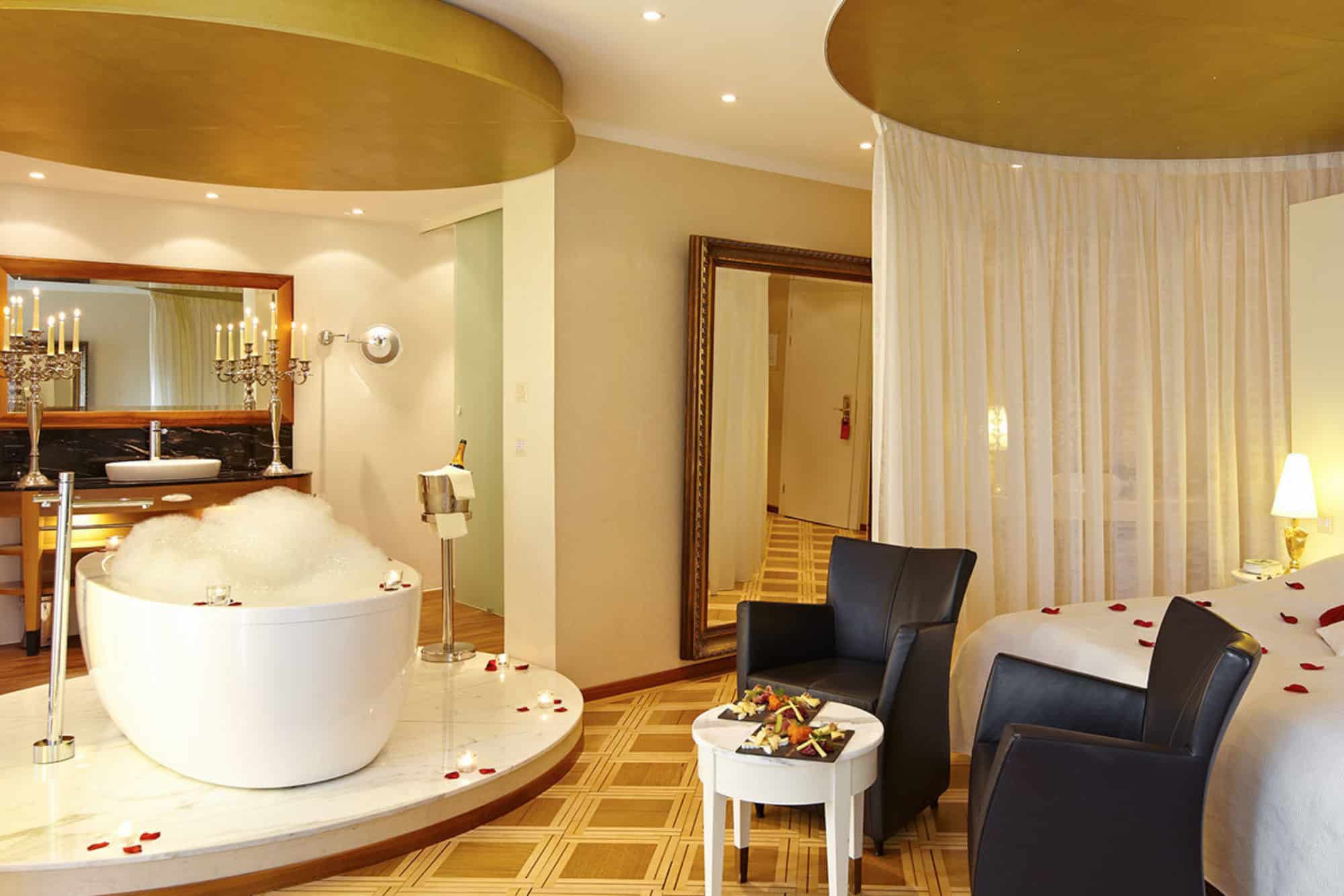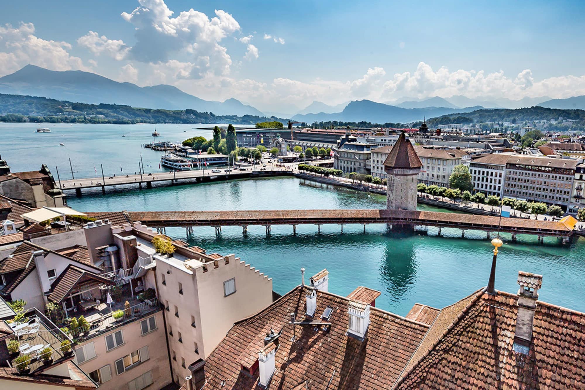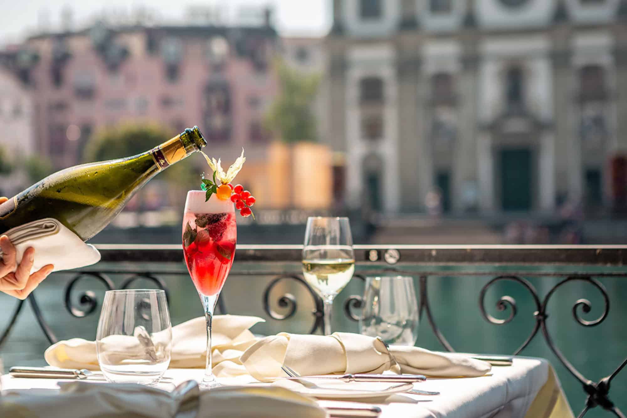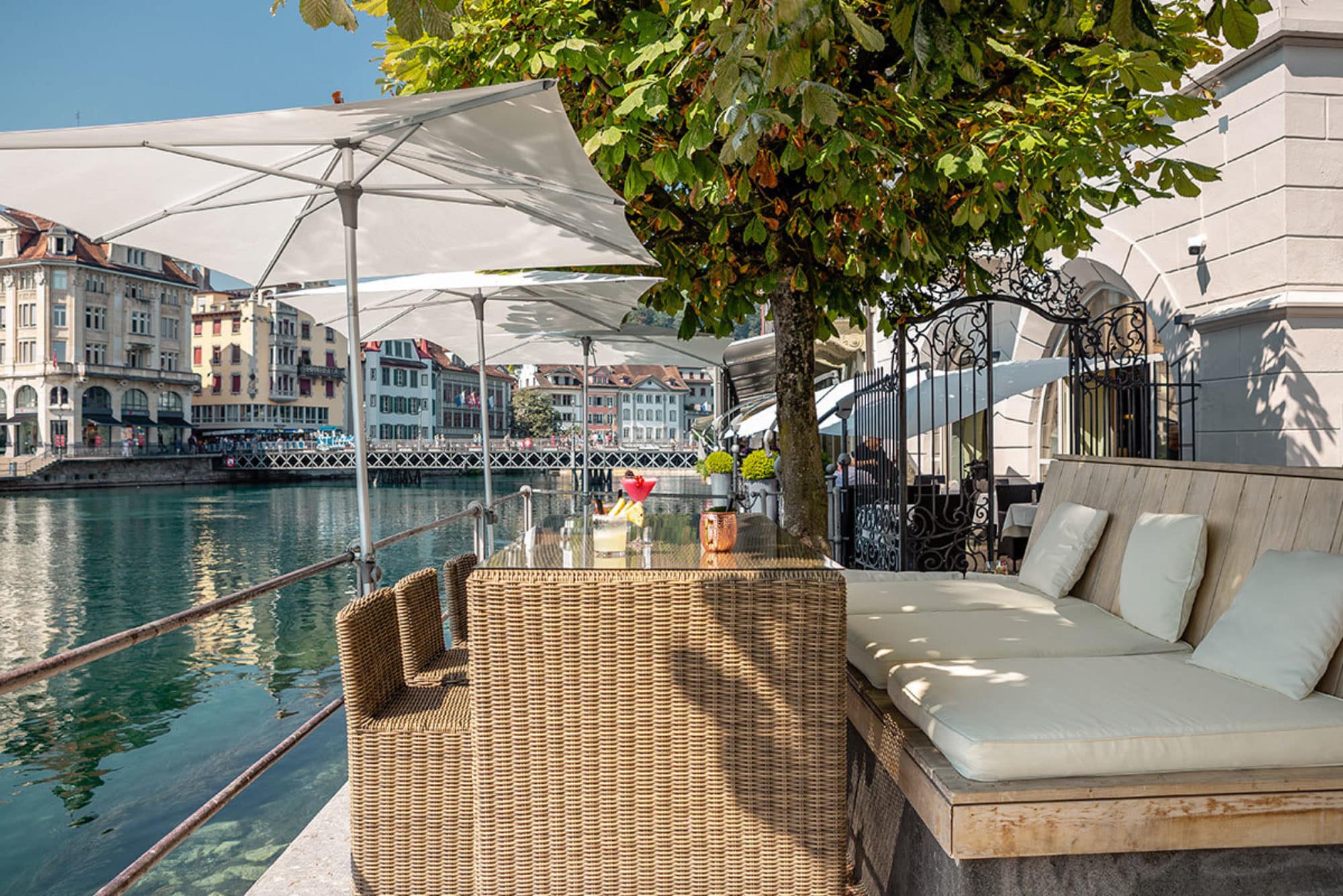 Set right on the waterfront and in the heart of Lucerne's Old Town, Hotel des Balances is just steps from the famous covered Chapel Bridge. The gorgeous piano bar opens right onto a waterfront terrace, ideal for enjoying a glass of wine after an exhilarating day of hiking. With its impeccable service, comfortable rooms, and the most wonderful down comforters imaginable, the Hotel des Balances is an absolutely classic hotel with utterly up to date services and style.