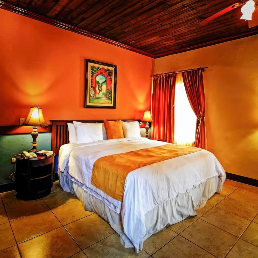 This simple but comfortable hotel is the most convenient base for exploring the magical ruins of Copán—right in the heart of the cobblestone-street town (the ruins are a 10-minute walk away). The hotel features 51 guest rooms, designed in classical colonial style with air-conditioning, ceiling fans, cable TV, and phone. Courtyards with well tended gardens filled with flowers and tropical plants contribute to the hotel's old world charm, while a swimming pool, Jacuzzi, and small sauna and gym offer modern conveniences. A history note: the hotel is built on the site of an old family home that welcomed early investigators and visitors to Copán—the first “hotel” in Copán.
