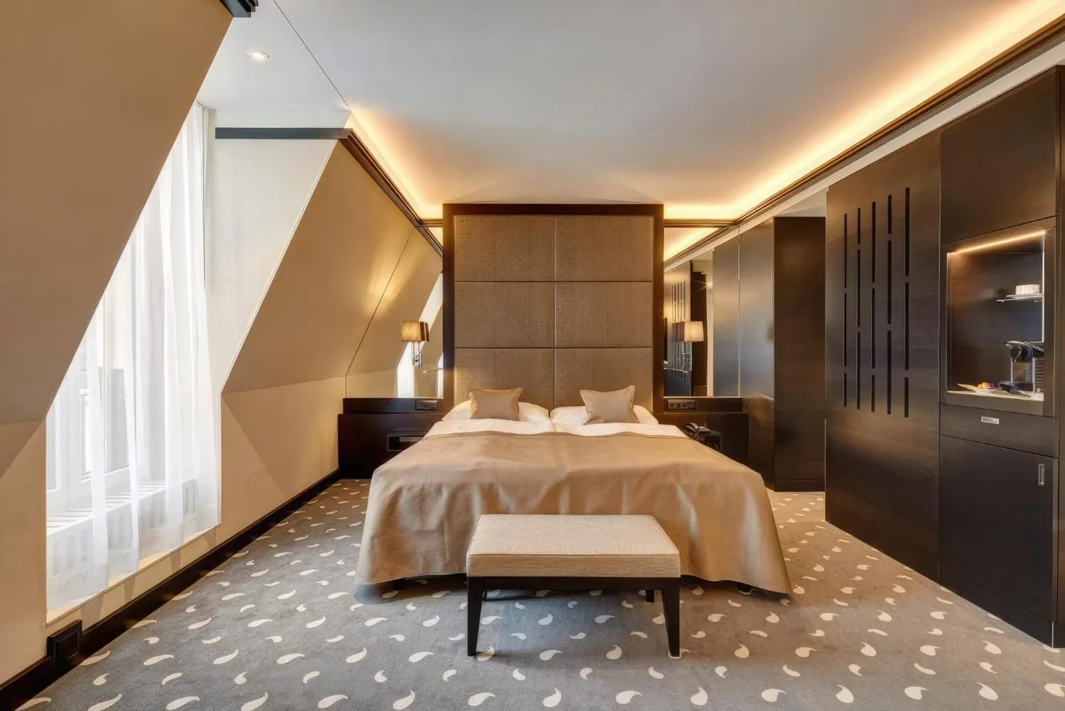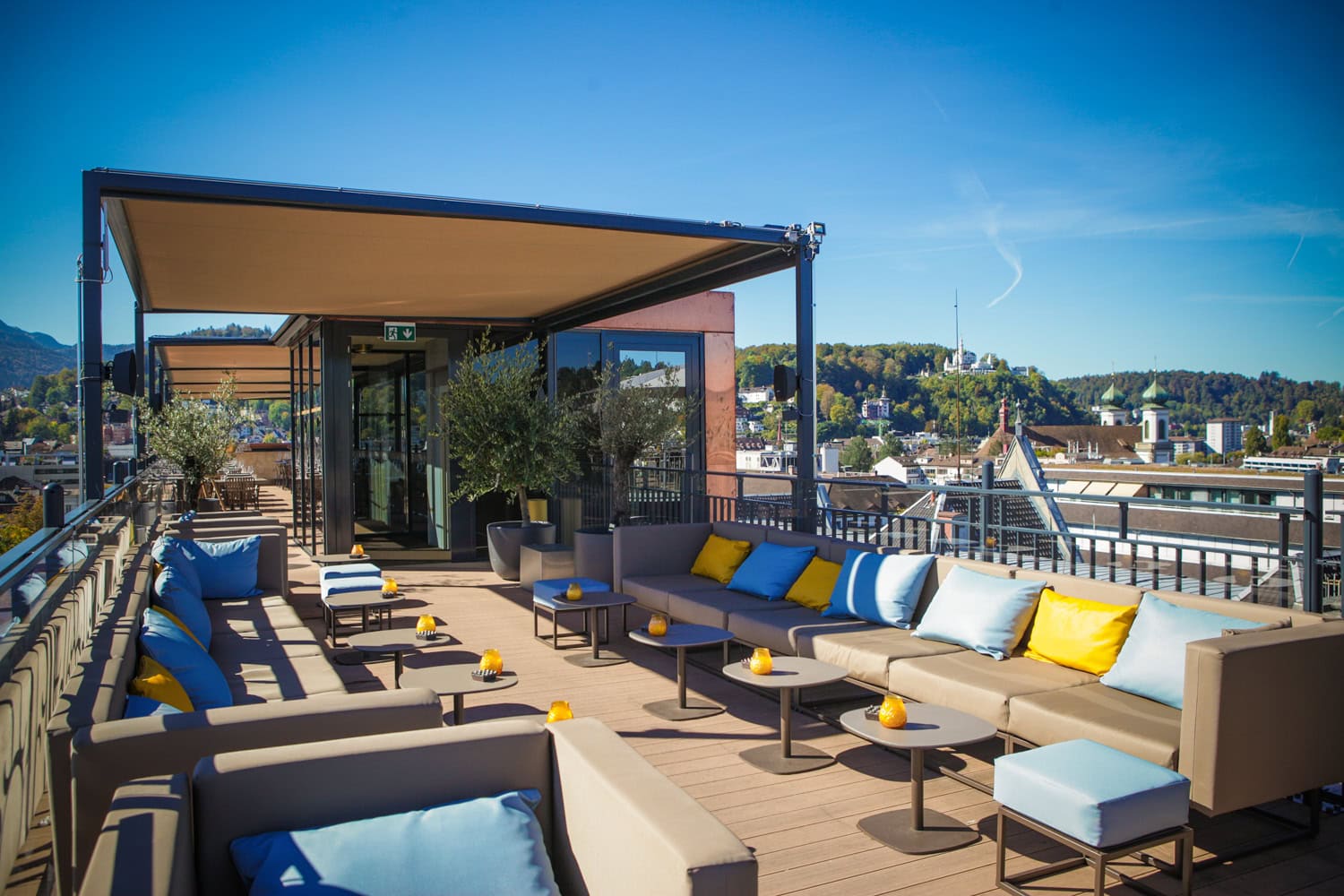 Set right in Lucerne's city center, the 77-room Hotel Monopol has an enviable location. It's a quick walk from the railway station and set right by the lake and the Chapel Bridge. Architecturally, it's quite fascinating, with a Baroque exterior that makes it resemble a Parisian or Viennese palace. At the end of the day, relax in the lounge bar on the terrace and take in the splendid 360-degree panoramic views. We stay in junior suites or deluxe rooms, both featuring a seating area and all the amenities.