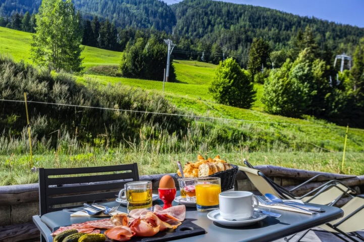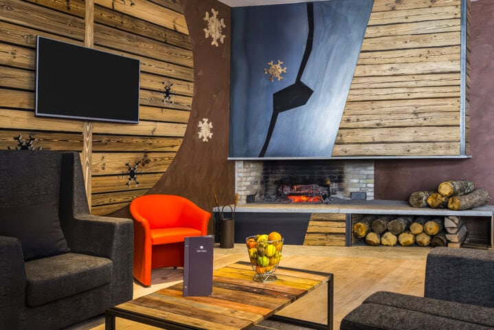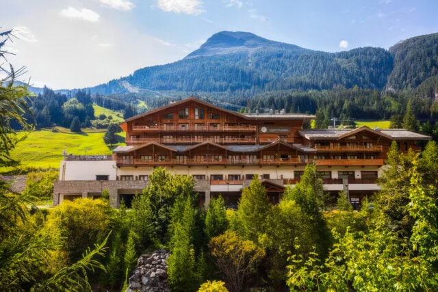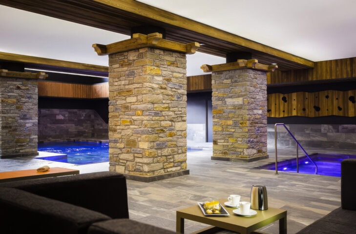 This 83-room hotel sports an alpine character with a contemporary twist. Each room features a balcony, and the ones we stay in offer views of the nearby ski slopes. Onsite amenities include a restaurant, bar, indoor swimming pool, spa with sauna and hammam, and a fitness area. The staff is kind and efficient.