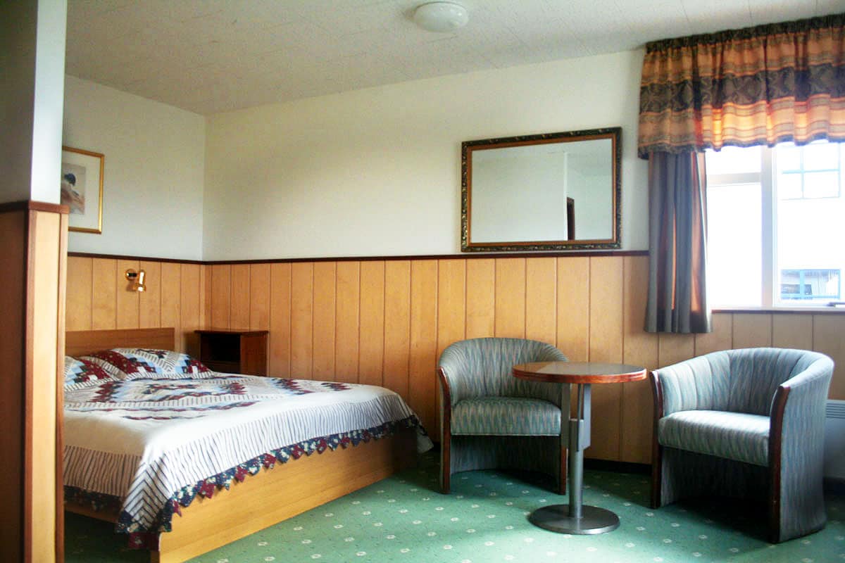 This lodging is truly in “the middle of nowhere,” near the tongue of the huge Vatnajökull Glacier on the edge of spectacular Skaftafell National Park. Lava fields stretch out in front of the hotel, and on a clear day, you can see the ocean. Rooms are small and simply furnished but cozy and comfortable. Have a drink at the tiny upstairs bar for a fantastic glacier view.