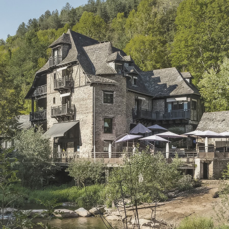 Nestled at the bottom of the ravine that it shares with the stunning village of Conques, this small hotel-restaurant occupies a restored 18th century water mill on the banks of the Dourdou River. It is owned by a passionate young chef who received his Michelin Star two years ago and serves cuisine that is traditional and creative at the same time. The guest rooms are spacious and well appointed, and the charming living room is a perfect place to sip an Armagnac by the fireplace!