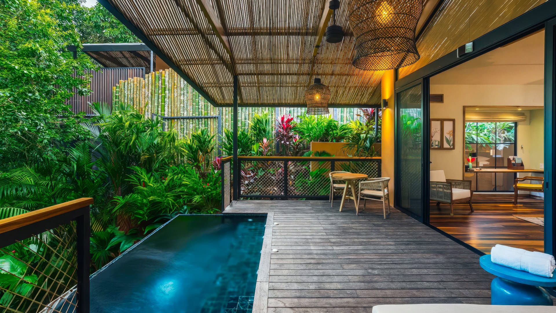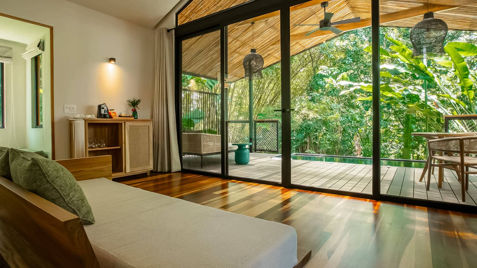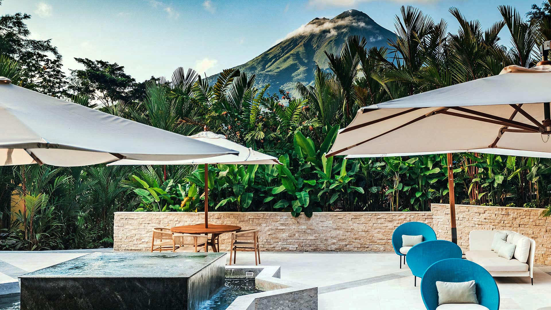 This laidback rainforest retreat is legendary “Pura Vida” at its best and offers a magical exerience. Immersed among lush tropical gardens of heliconia and bougainvillea, it's laced by quiet paths leading past ponds of colorful koi. Enjoy a soak in one of the seven mineral hot-springs pools (fed straight from Arenal Volcano), take a dip in the swimming pool with its swim-up bar, a perfect place to sip a sundowner, or opt for a relaxing treatment at the award-winning spa. Choose between a freestanding casita, with its sweeping view of the volcano or jungle canopy and a garden with an outdoor shower, or opt for a secluded (and romantic!) Rainforest Pool Villa.