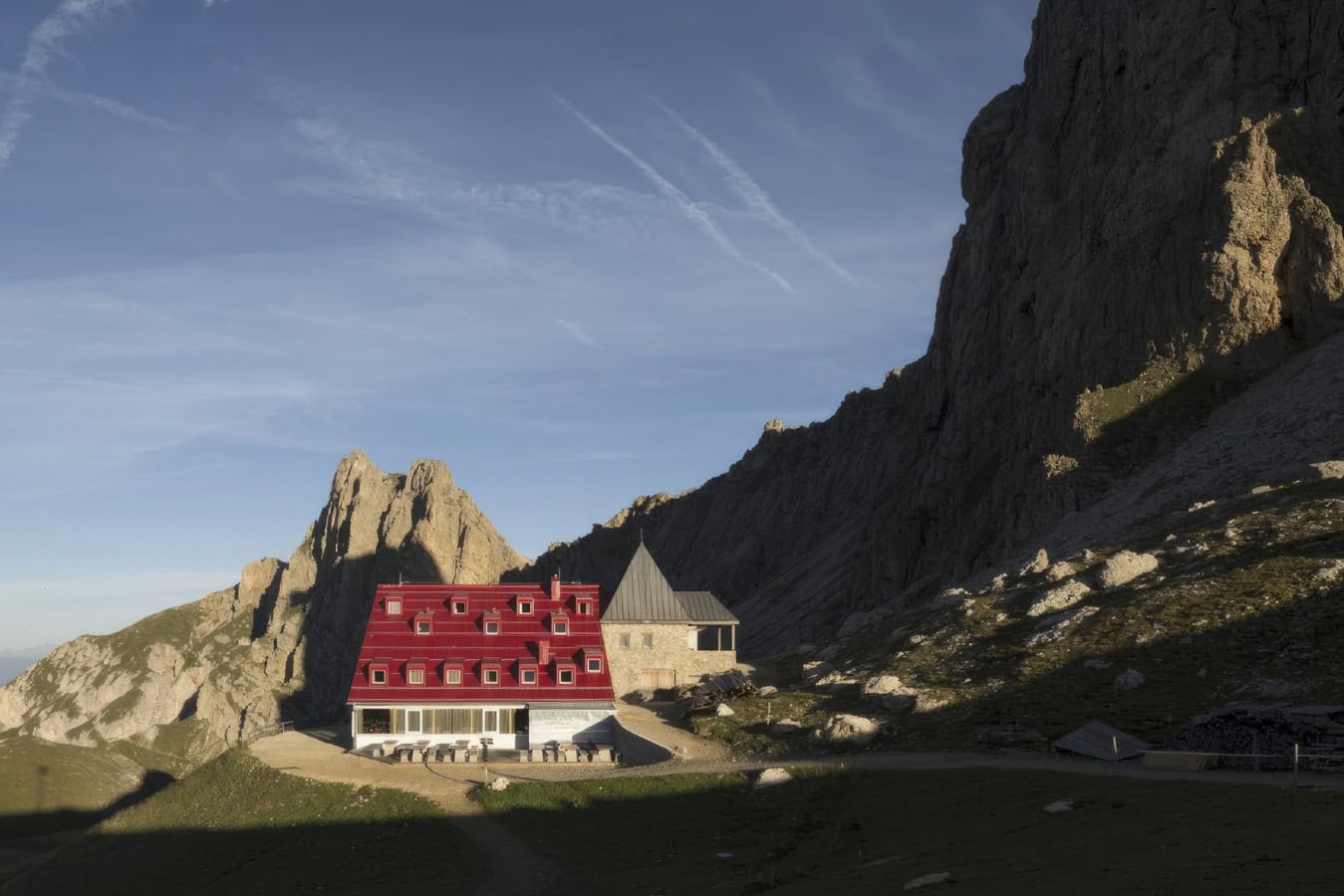 The Rifugio Alpe di Tires enjoys a remarkable setting overlooking the rolling green pastures of the Alpe di Siusi with the magnificent Sassolunga and Sasso Piatto mountains forming a perfect backdrop. It's a very comfortable place to stay and features comfortable 4- and 6-person rooms, hot showers, and a good restaurant.