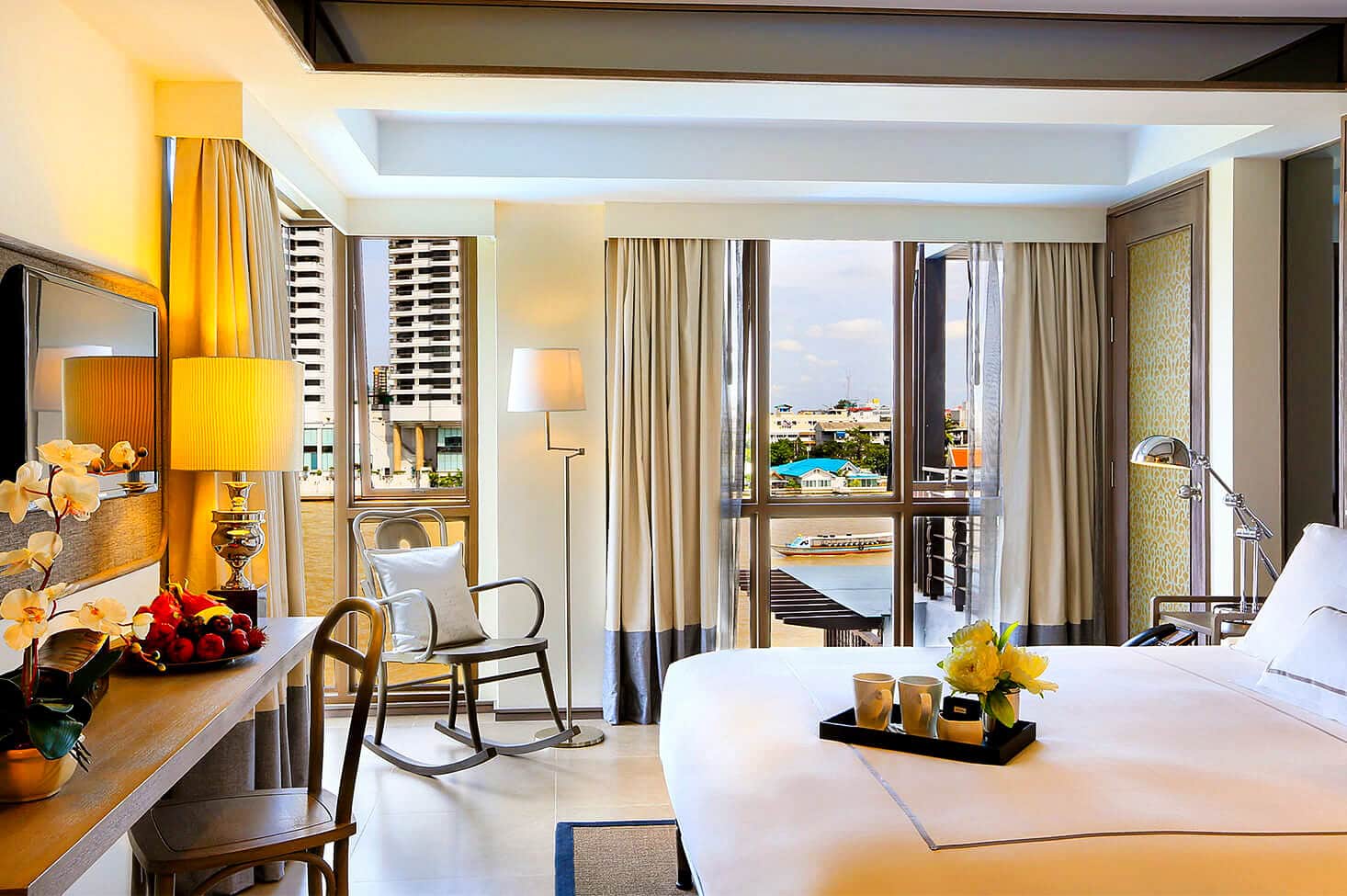 Situated along the Chao Phraya River and surrounded by Bangkok's heritage sites, the Riva Surya is a beautiful boutique hotel with a riverside swimming pool. All rooms have aery balconies and views of the river or the old town, and there are three restaurants. The hotel is within walking distance of the Grand Palace and Reclining Buddha, and right next to the Phra Arthit pier, where you can catch river boats to all the major temples.