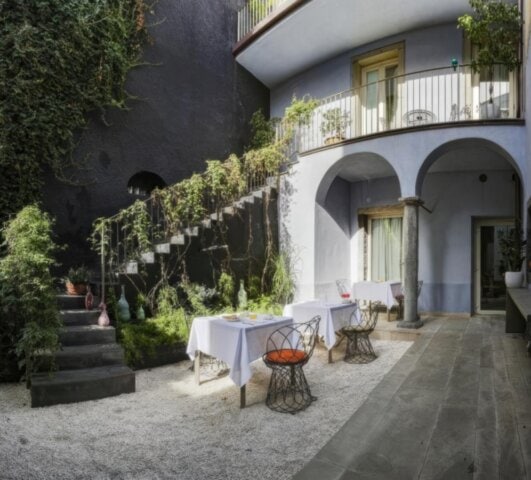 This small elegant hotel (just 13 rooms) lies in Linguaglossa, an off the beaten track Sicilian town on the slopes of Mt. Etna. A renovated 19th century building, it blends old world charm with contemporary style. A small “wellness” center features a Jacuzzi, sauna, and spa treatments. The restaurant offers Sicilian specialties.