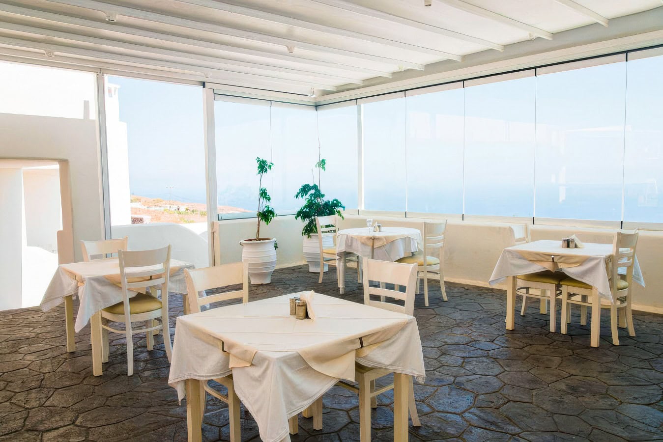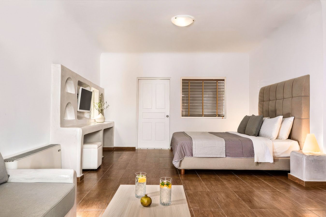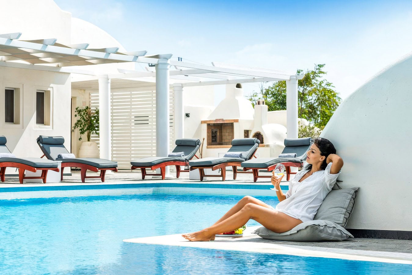 Nestled into its Cycladic surroundings stands the 5-star Splendour Resort Santorini, a tranquil property with sweeping views over the Aegean Sea. This resort has four buildings for guest rooms and another two for their lobby, dining, and pool bar. Each room features minimalistic design and decor, keeping with the iconic style of the islands, and offers comfortable beds, spacious bathrooms, and nice sea views.