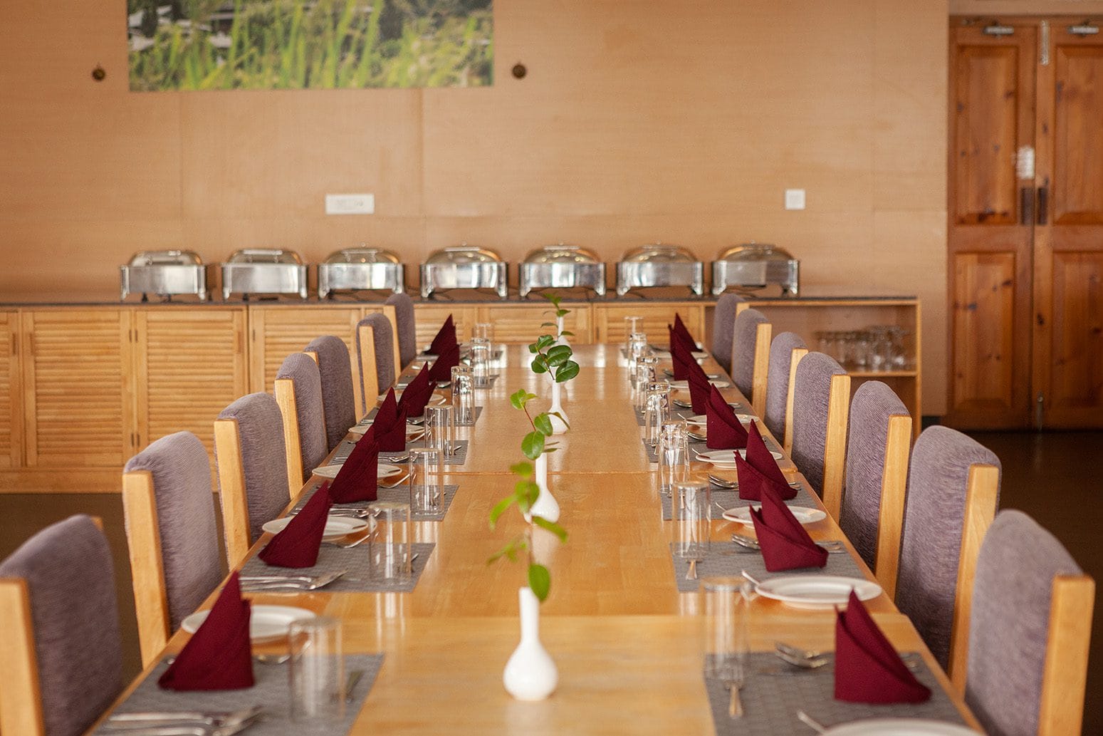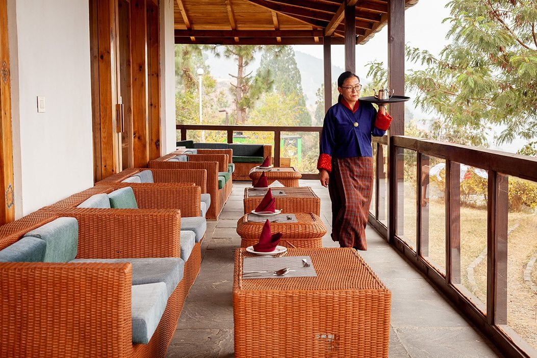 Overlooking the Punakha Valley, Zhingkham Resort is a privately owned hotel with a relaxing atmosphere. Comfortable guestrooms have white-linen beds, and private balconies feature beautifully carved wooden railings. For a great photo op, head to the open-air lounge area with sweeping vistas of the mountains and valley and perfectly placed with full views of the Punakha Dzong.