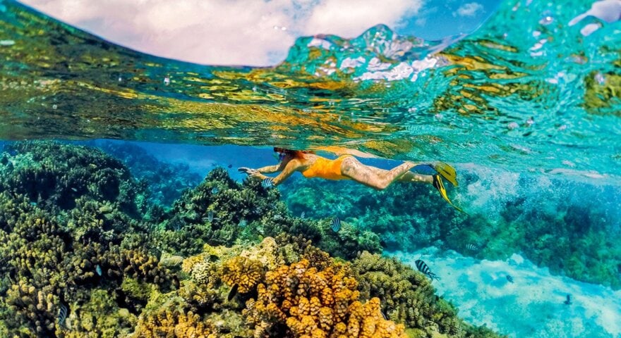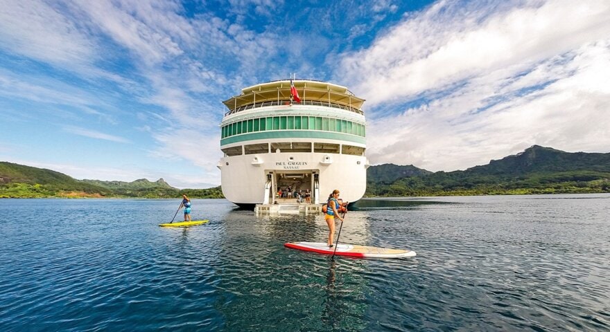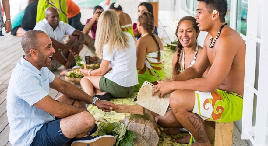 As the day unfolds in front of you, where will you go? Exciting shore excursions await, but so does Motu Mahana, Paul Gauguin Cruises’ own private islet. Choose from swimming, snorkeling, kayaking, or simply lounging on the beach with a cold drink from our floating bar. Les Gauguines are also on hand to share musical entertainment and Polynesian crafts.