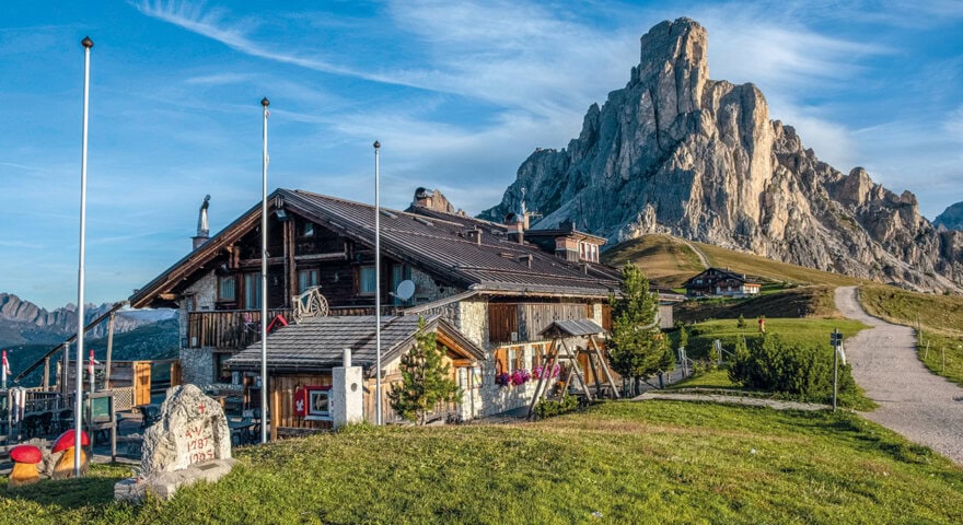 A challenging hike (with moderate options) brings grand vistas today. At hike’s end, we head up to Rifugio Lagazuoi by way of a spectacular cable car ride. Rifugio Lagazuoi, our home for the night, is a hike-in lodge with a “top of the world” location surrounded by breathtaking peaks and the silence of the mountains. Weather permitting, we’ll experience one of the world’s finest sunsets here as the surrounding valleys disappear into the shadows, highlighting rock pinnacles that take on an extraordinary palette of ever-changing hues. We’ll enjoy a cold beer or a glass of wine on the terrace to enjoy our mountaintop setting and the colors on the pinnacles.