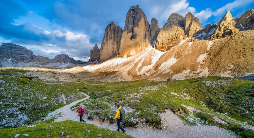 On the hike down to Cortina from Lagazuoi, we’ll explore some of the haunting World War I tunnels carved into the mountains by Italian soldiers. We have various hiking options while in Cortina, and for our grand finale hike, we rise early and head up to the Sesto Dolomites and the famous Tre Cime Di Lavaredo (“Three Peaks of Lavaredo”), the quintessential climbing mecca of the Dolomites. Our leaders will suggest hiking options throughout the trip, ranging from easy to challenging, all with stunning views. Depart on Day 8 via Venice, or extend your stay in this marvelous city.