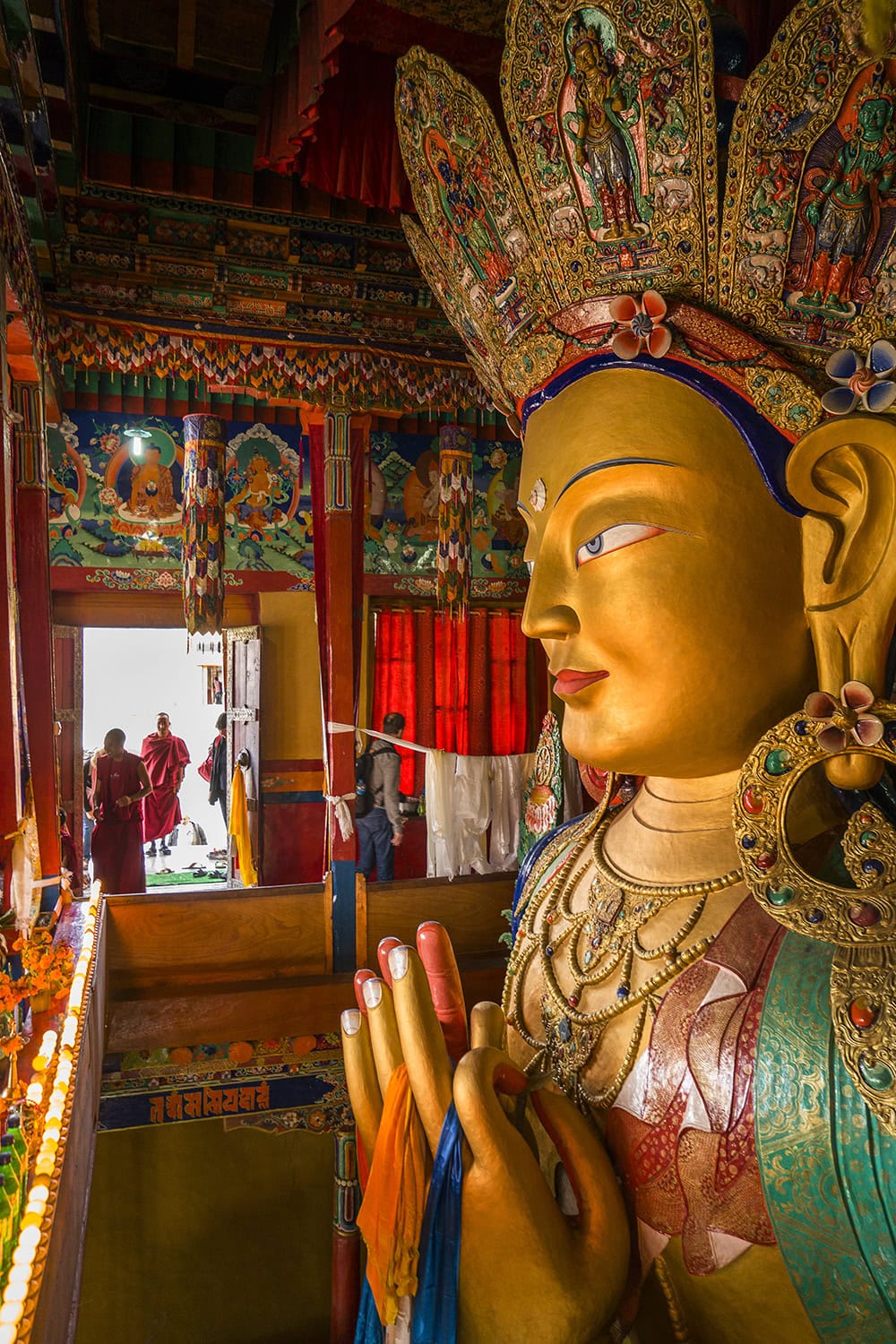 Awe-inspiring Ladakh is a vast moonscape of 20,000-foot peaks surrounding stone-built villages and an ancient cultural heritage. In this Buddhist realm hidden in the Western Himalayas, we take day hikes to traditional villages under a cobalt-blue sky, discover the grand hilltop monasteries of the Indus Valley, including lovely Hemis Monastery, built in 1630, and witness a vibrant monastic festival. Tibetan heritage is beautifully expressed here in the traditional dress of the people, in thousand-year-old monasteries clinging to cliffs, and in serpentine walls of exquisitely carved mani stones (Buddhist prayer stones). Special highlights of our journey include witnessing the Phyang Tsedup festival in a remote village and exploring the breathtaking Nubra Valley, where we cross the world’s highest motorable road, visit villages in the high mountain desert, and watch a golden sunset from atop a massive statue of the Maitreya Buddha.
