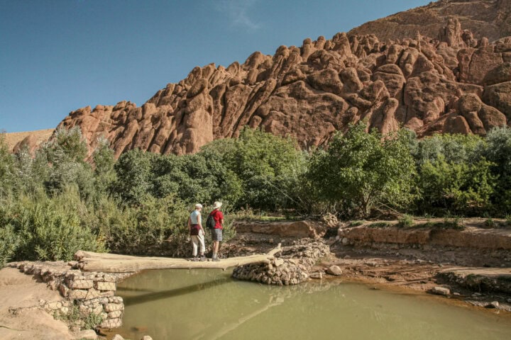 In the eastern reaches of the High Atlas, we walk amid towering walls of orange limestone in the Todra Gorge, a series of breathtaking canyons that rise above palm-fringed oases where sheep roam. We’ll also visit the lush Valley of Roses, meandering along trails flanked by oleander hedges, almond trees, and fruit orchards and visiting a Berber settlement.