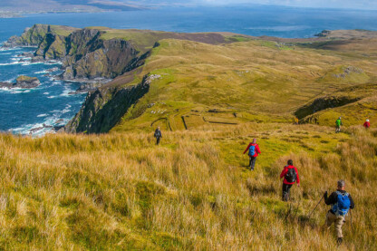 A stunning hike brings us to a sweep of wild beaches in Donegal Bay and along the soaring sea cliffs of Sliabh Liag (Slieve League). Another hike takes us across wild heathlands and over the great cliffs of Glen Head down to the secluded glen of Gleann Cholm Cille, a powerful place of pilgrimage. We’ll pass through the rural settlements of the Irish-speaking community of Gaoth Dobhair (Gweedore), a region with strong music, song, and dance traditions.
