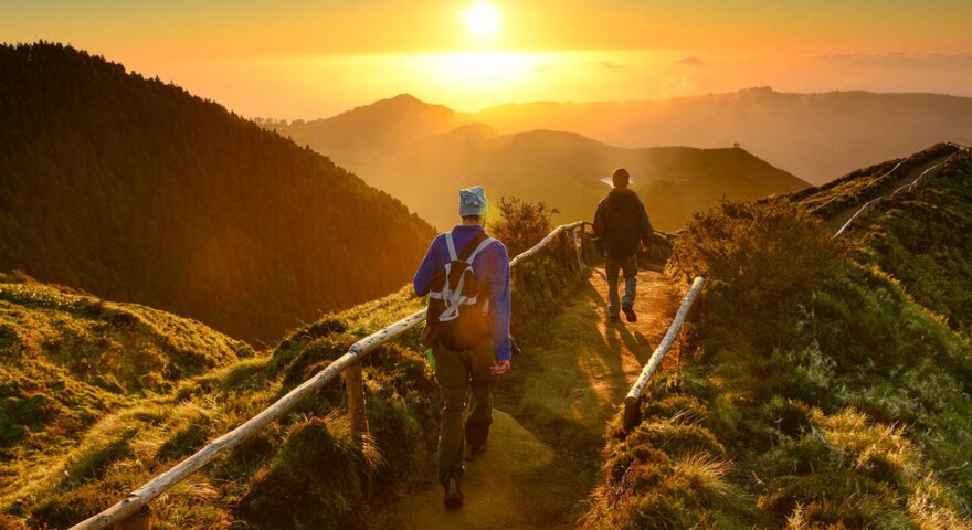 The Azores have a subtropical maritime climate with mild temperatures throughout the year. In the summer, temperatures average between the mid-60s°F to the low 80s°F during the day and the 50s°F and 60s°F at night. It can be humid, and although it is usually sunny in the summer, clouds and rain is a very real possibility all year round—it is not uncommon for rain in the morning and sunshine in the afternoon. A light waterproof shell of a rain jacket and pants in your day pack are highly recommended for the short rainstorms that may pass us while hiking.