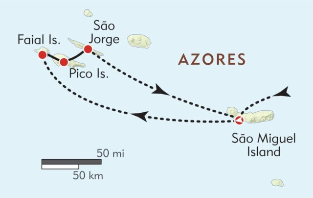 Come with us to an island-world of rustic villages, lake-filled calderas, bubbling hot springs, and ancient vineyards—the Azores! On this volcanic archipelago just a five-hour flight from Boston, we explore four islands: São Miguel, Faial, São Jorge, and spectacular Pico, each with its own personality and terrain. We’ll hike along crater rims, cross rugged moorlands above a deep blue sea, and follow ancient canadas (pathways) that link farms and villages. To complement our hikes, we’ll head out for whale watching, dine on the abundant fresh seafood, and relish the unhurried pace of Azorean life.
