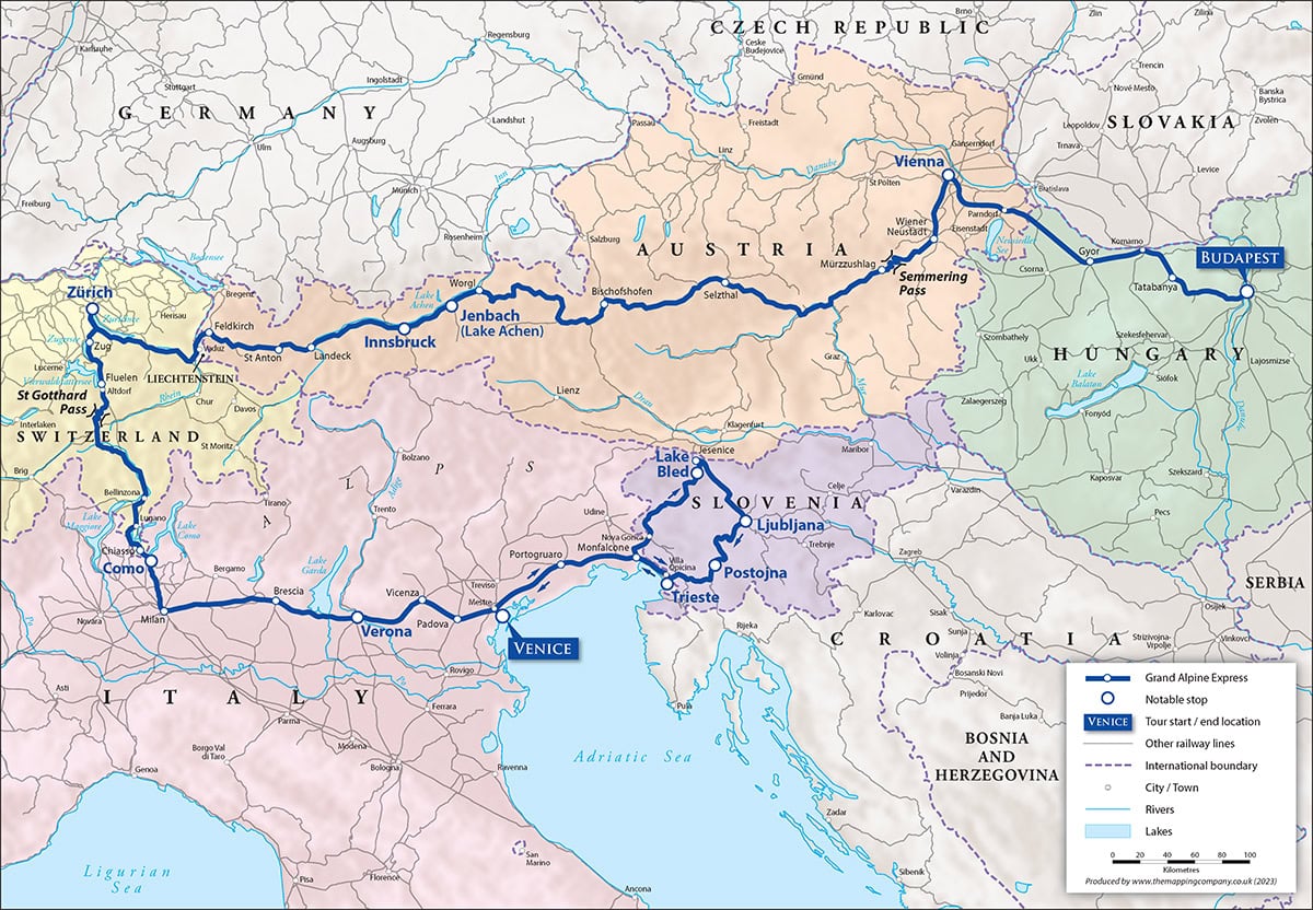 From the classic capital cities of Budapest and Vienna, traverse some of the most scenic railway lines in the world as the Golden Eagle Danube Express weaves its way through tunnels, across viaducts, and over mountain passes. You’ll venture deep into the Austrian Tyrol before heading across the valleys of the Swiss Alps and onward through the Italian Lake District, then traveling into the lesser-known but equally beautiful country of Slovenia and its jewel in the crown, Lake Bled. Journey’s end will find you in the stunning maritime city of Venice, an outstanding mix of Gothic and Renaissance palaces perched on the edge of the Italian coast—a perfect end to a memorable journey of alpine discovery.