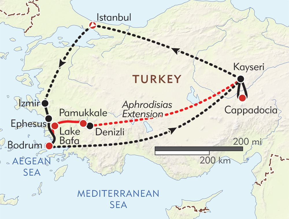 This Private Journey brings you an insider's view of the rich culture and ancient heritage of Turkey, with visits to dazzling Istanbul and to the surreal fairytale landscape of Cappadocia in the interior heartland. Heading along the Aegean Coast, explore glorious Ephesus, the best preserved Roman city in the Mediterranean, and lovely off-the-beaten-path sites such as exquisite Priene, with its Temple of Athena. Incorporated into your Private Journey are walks on ancient trails through beautiful countryside of olive orchards, visits to serene rural villages where you can sip tea in cafes under age-old plane trees, and opportunities to mingle with the locals in farmers markets and artisan workshops. An optional mid-trip extension brings you to Aphrodisias and the remote sanctuary of Zeus at Labranda.